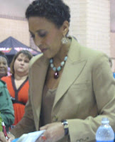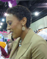 At 12:30 pm Robin Roberts took the stage. We got there early but by that time all the seats were taken. We stood way in the back but fortunately they had two large screens on either side of the stage so we could see her. Robin's speech was inspirational and very down to earth as well. She talked about how her parents brought her up with to follow the three D's: Determination, Dedication and "D" Lord. She talked about her coworker Joel Siegel (the movie reviewer's) battle with colon cancer and how, before his death, he urged others to get checked because it would have saved his life had his cancer been caught earlier. She mentioned that she found her breast cancer lump right after his funeral and talked about her whole journey through treatment. Originally she was not going to go public with her condition but her mother said she should take her MESS and make it her MESSAGE. I thought that was a powerful statement. She also said you should always put yourself in a positive position of influence to reach others and to get that message out. Everything she said was very encouraging to me because it fit right into my beliefs about God being so much bigger than cancer and being able to take something so awful and turn it into something positive.